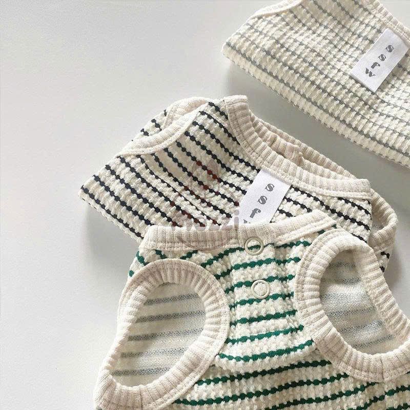 Áo ba lỗ SSEW chấm bi sọc ngang cho chó mèo