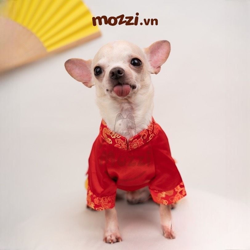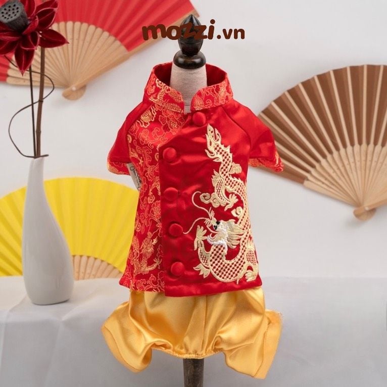 Áo dài Tết hình Rồng đỏ cho chó mèo