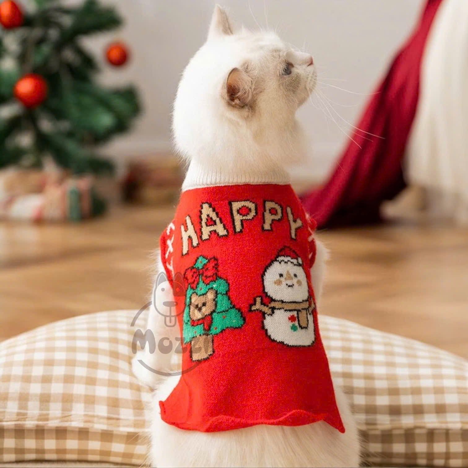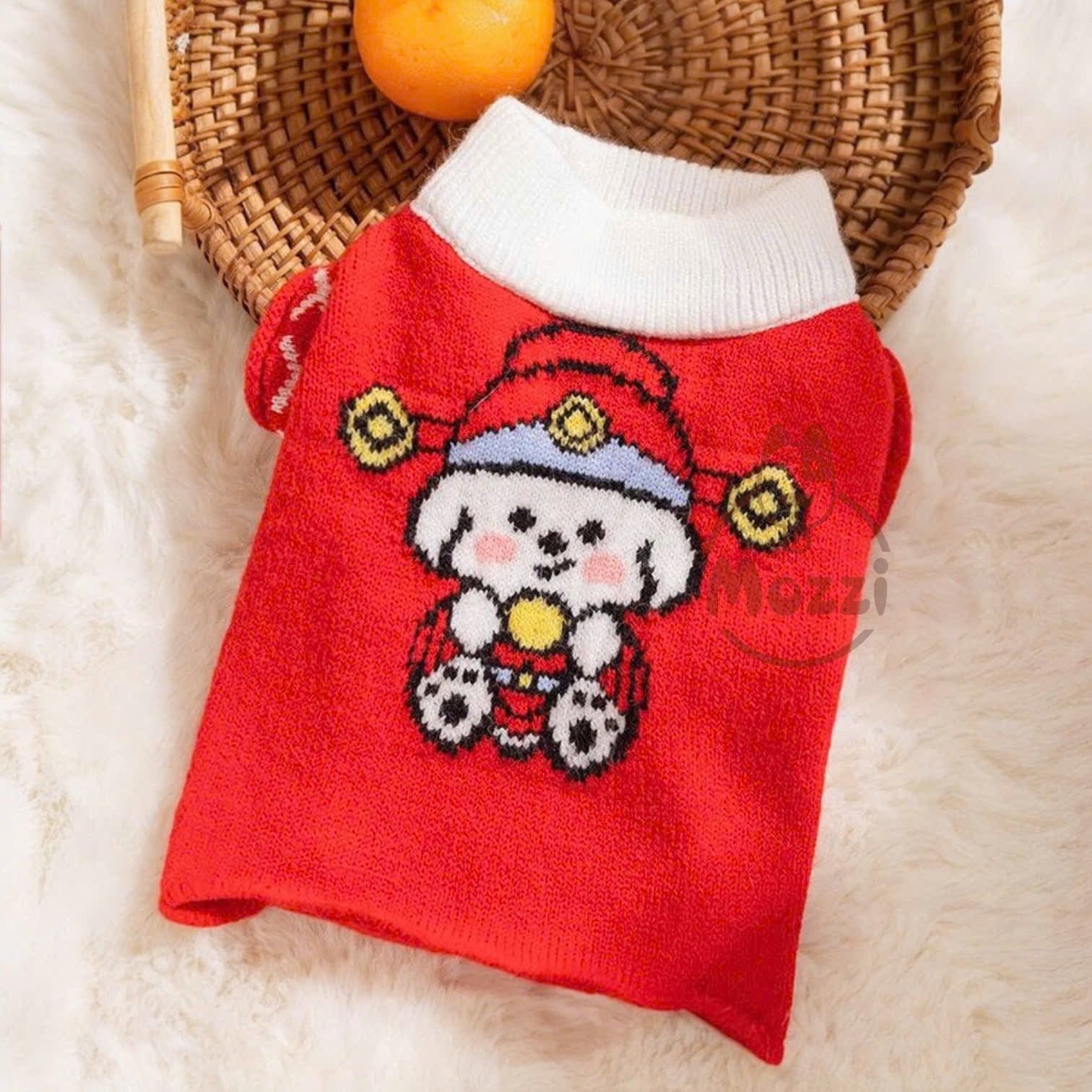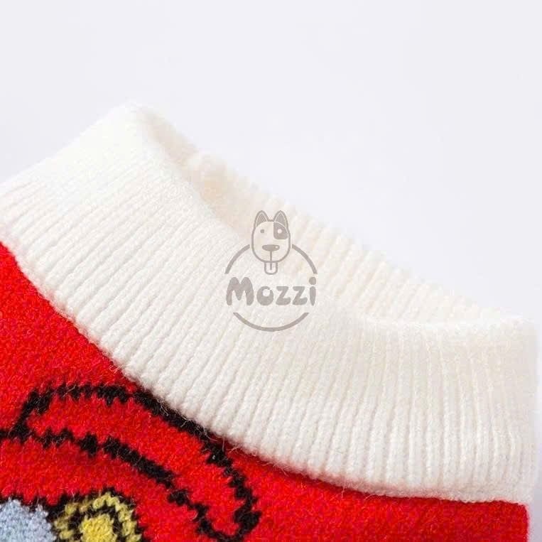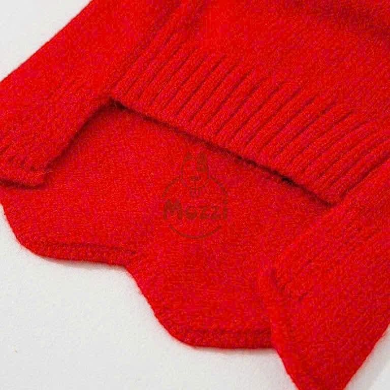Áo len đỏ cổ trắng tà nhún cho chó mèo