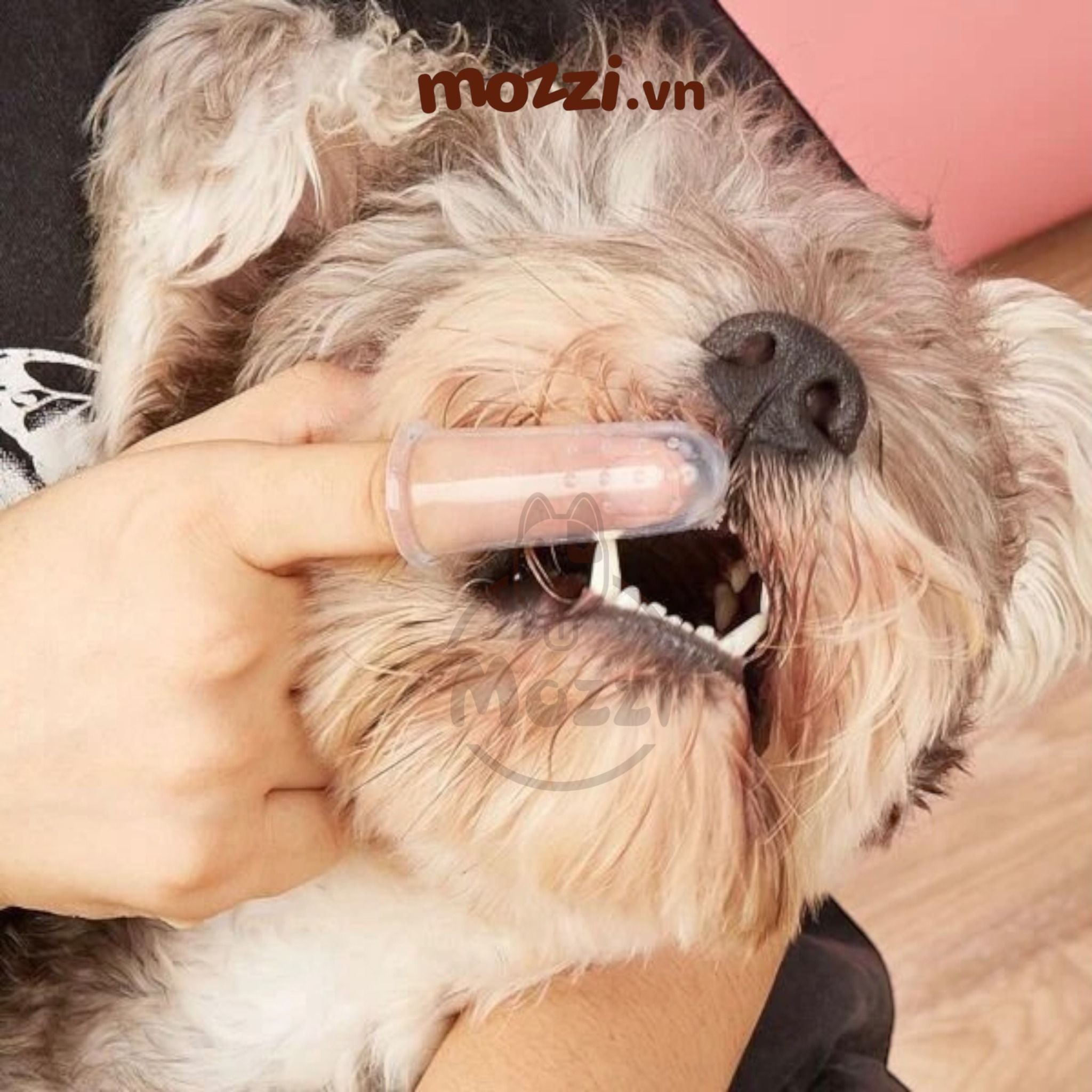 - Đeo bàn chải lên ngón tay của mình (có thể cho một ít kem) rồi chà nhẹ nhàng vào răng thú cưng. Việc này giúp thú cưng của bạn có thời gian để làm quen với bàn chải. Việc đánh răng mỗi ngày giúp cho hàm răng thú cưng luôn sạch sẽ, sáng bóng và hơi thở thơm mát.