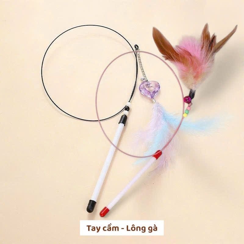 Đồ chơi Cần câu mèo lông gà cầm tay