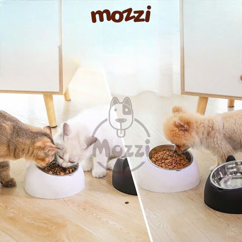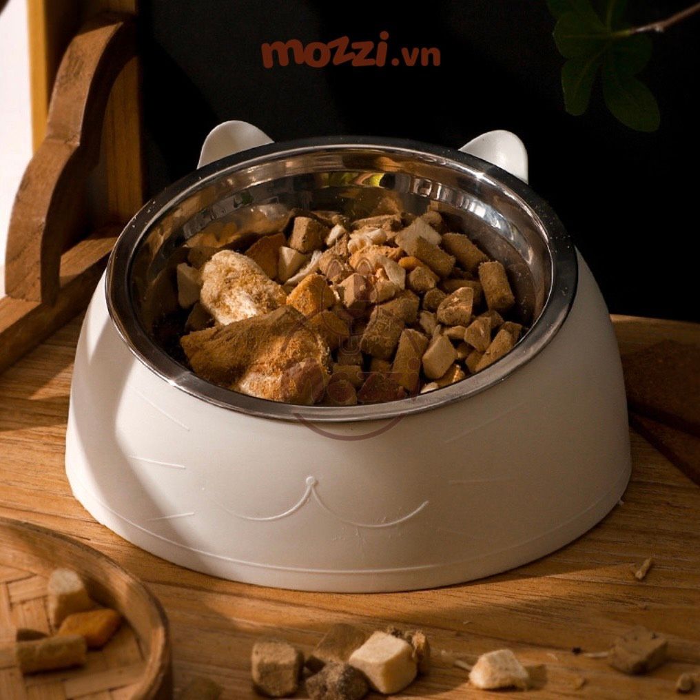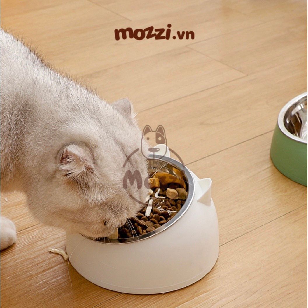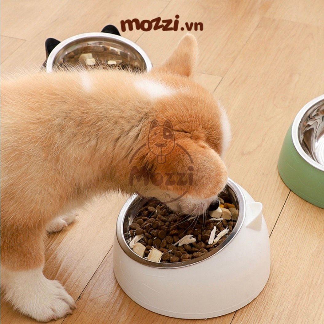 Chén bát ăn cho chó mèo đế nhựa cao có chén inox chống gù