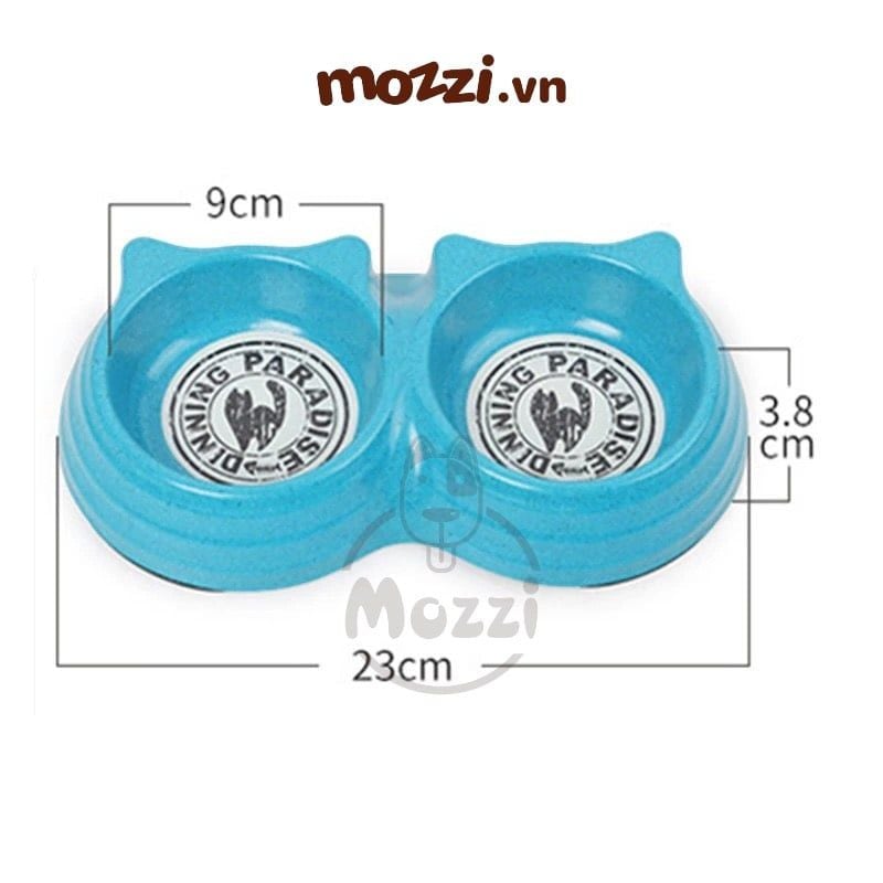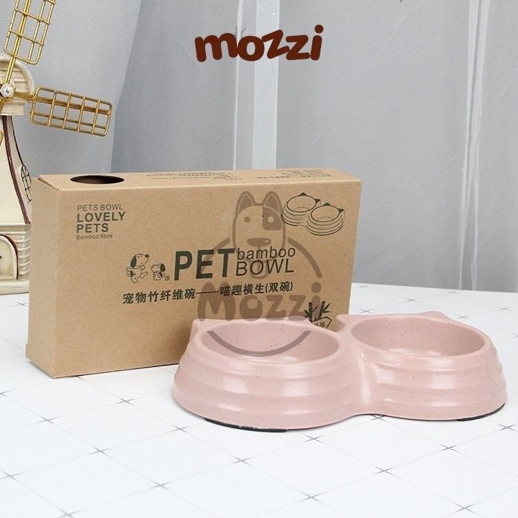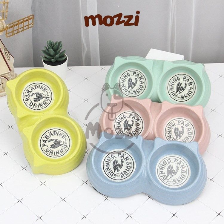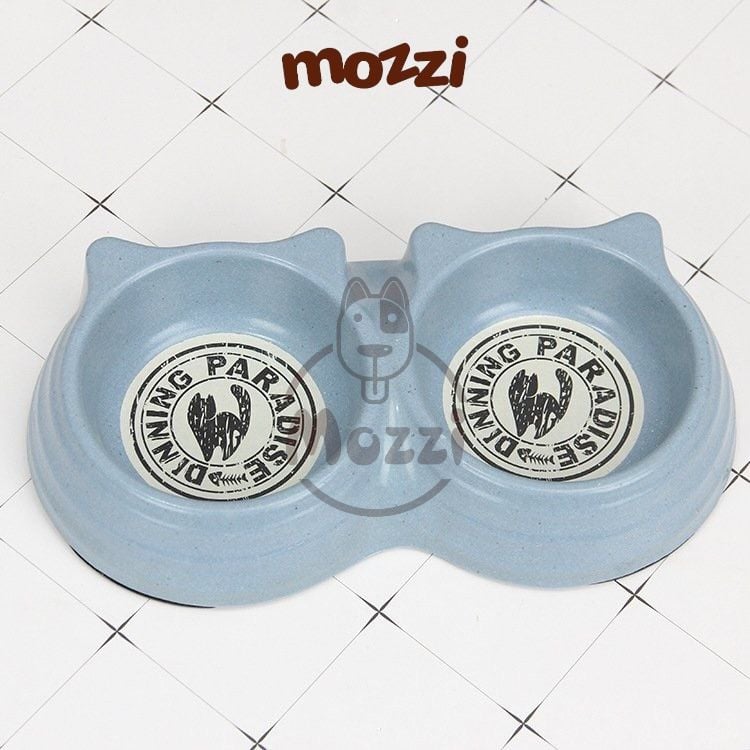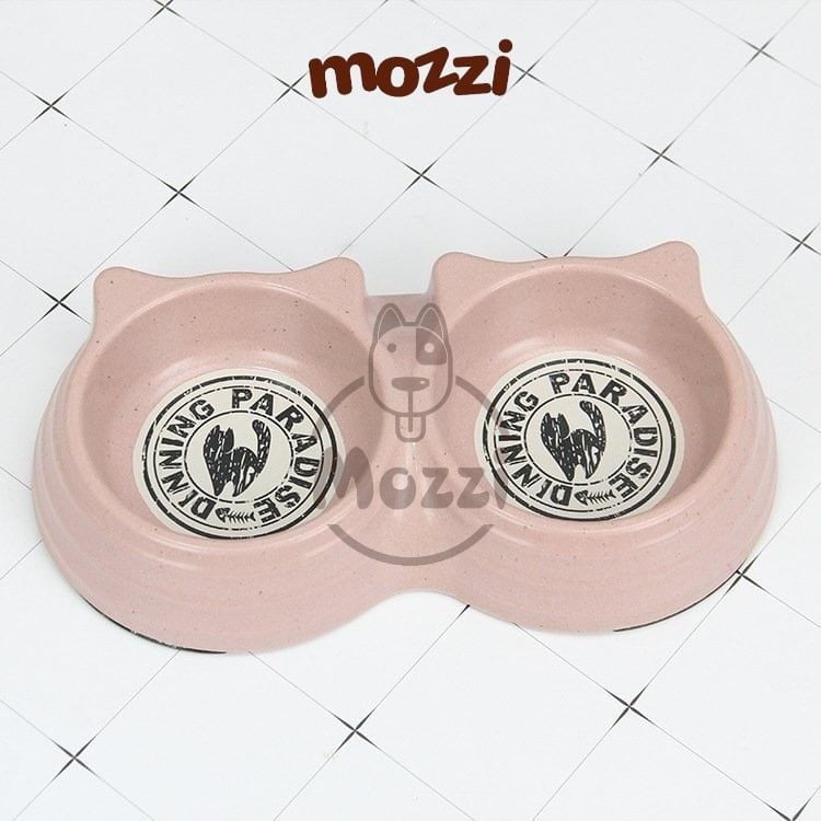 Chén bát ăn đôi cho chó mèo nhựa sợi tre hình tai mèo