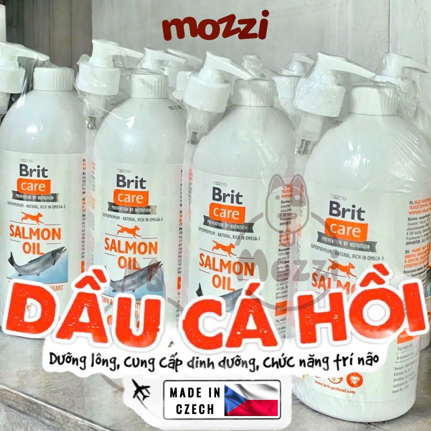 Dầu cá hồi Brit Care Salmon Oil là thực phẩm bổ sung dinh dưỡng cho chó mèo, sử dụng dầu cá hồi thường xuyên, lông chó mèo của bạn sẽ dày và bóng hơn.
