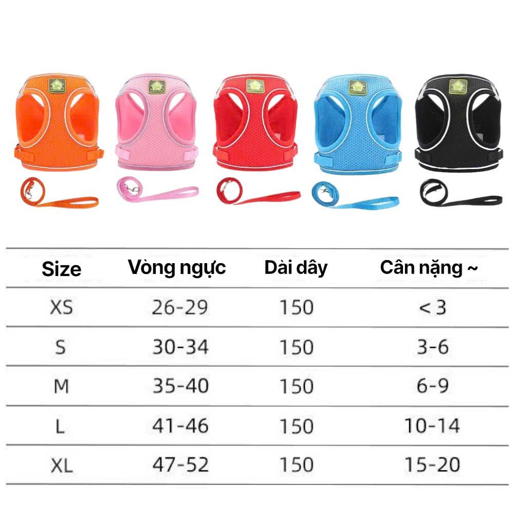 Dây dắt yếm ngực nửa bụng phản quang cho chó mèo