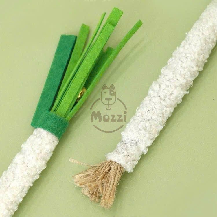 Phần lá hành có giấu chuông leng keng thu hút mèo từ xa, phần rễ hành làm từ cây gai dầu cũng tạo mùi hương dẽ chịu cho mèo
