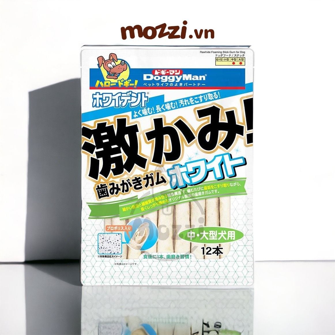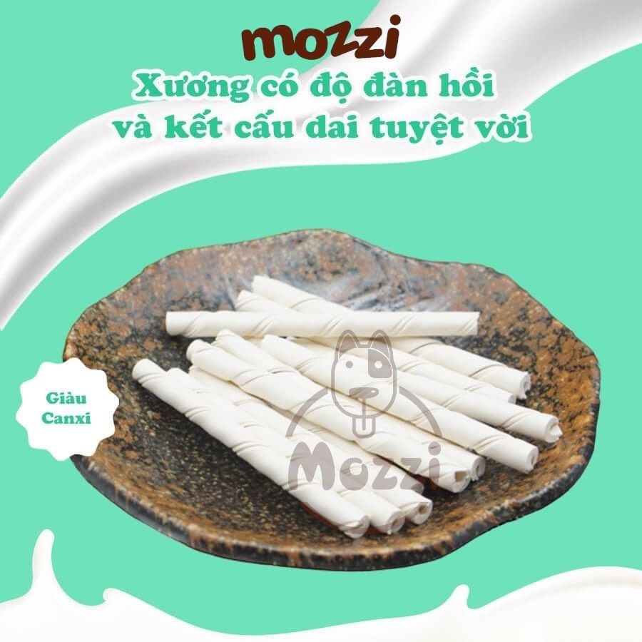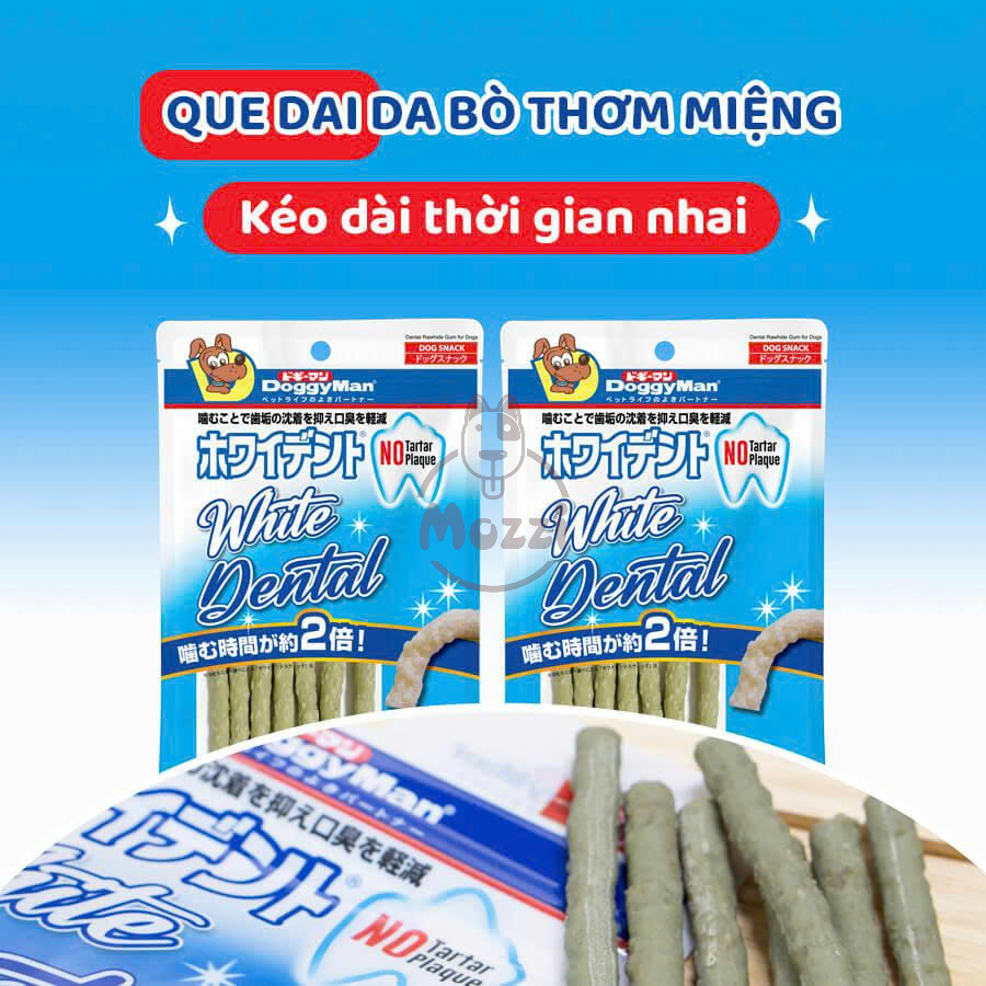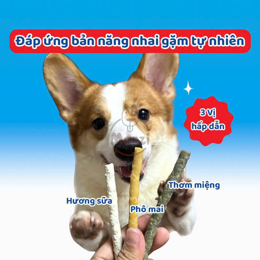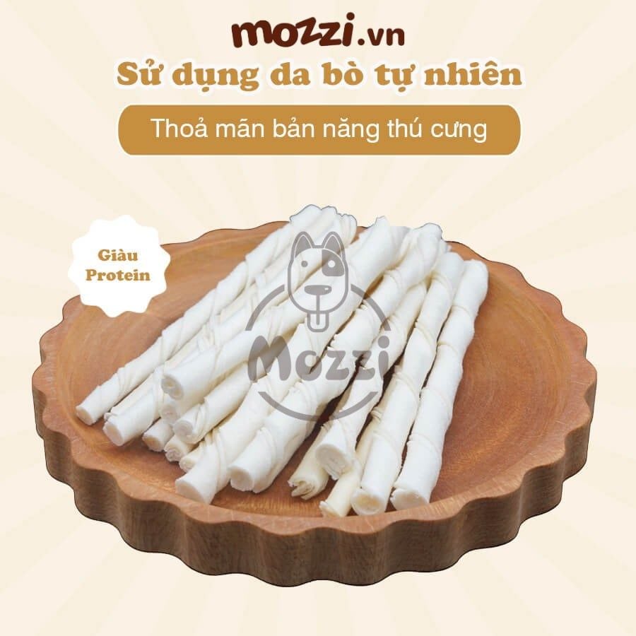 Da bò được nghiền nhỏ giúp dễ tiêu hóa. Cấu trúc dạng nhiều lớp đặc biệt giúp lấy đi mảng bám, làm sạch răng hiệu quả. Sáp ong giúp khử mùi hôi miệng. Phù hợp cho chó nhỏ và già.