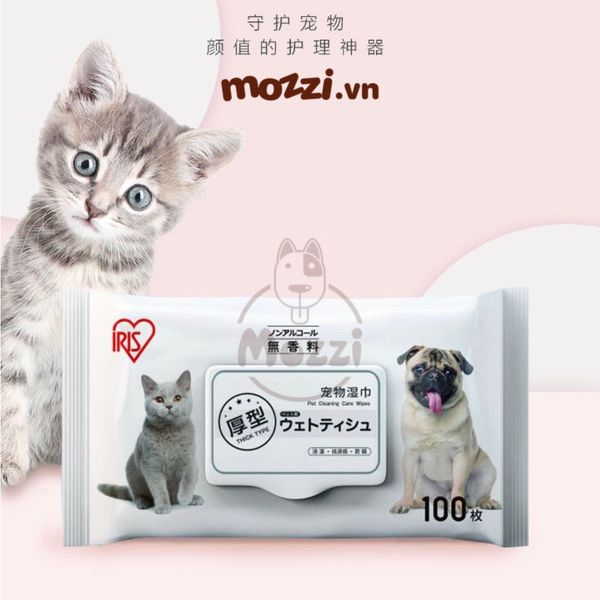- Khăn giấy ướt Iris từ Nhật Bản có thành phần vô cùng đơn giản với 99.9% nước tinh khiết cùng 0.1% chất kháng khuẩn và hyaluronic acid chuyên dưỡng ẩm, cho da chó mèo sạch sẽ, khô thoáng và mềm mại, mịn màng.