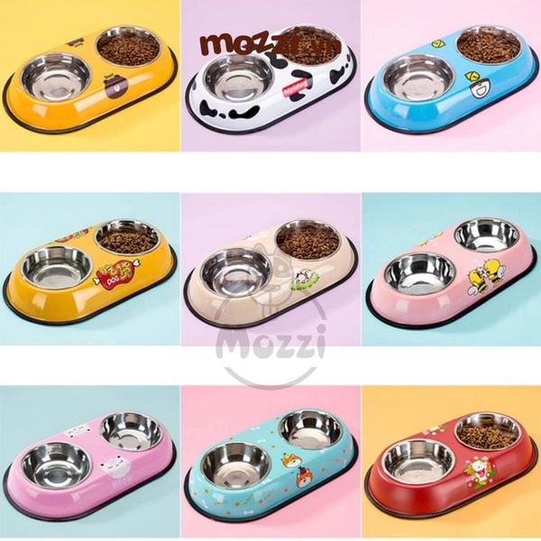 Khay thức ăn chén đôi inox nhiều họa tiết
