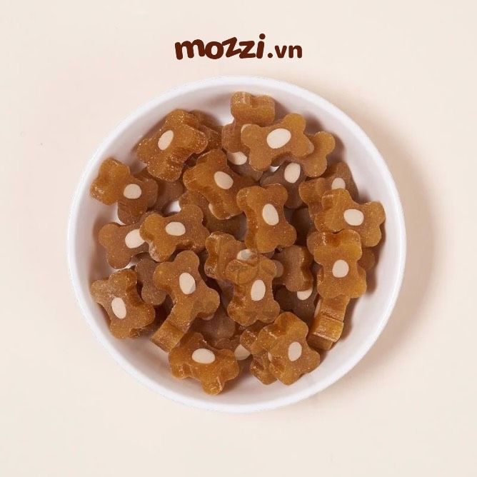 - Thanh nhai hình xương ưa thích của cún, càng nhai càng giúp loại bỏ mảng bám trên răng.