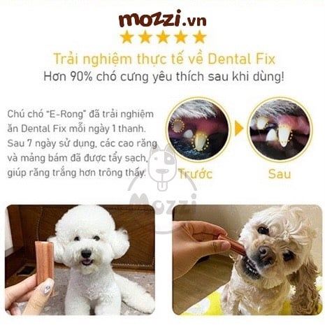 Snack Dental Fix là dạng thanh hoặc miếng nhai giúp làm sạch răng với các thành phần lành tính, không chứa chất bảo quản, chất tạo màu.