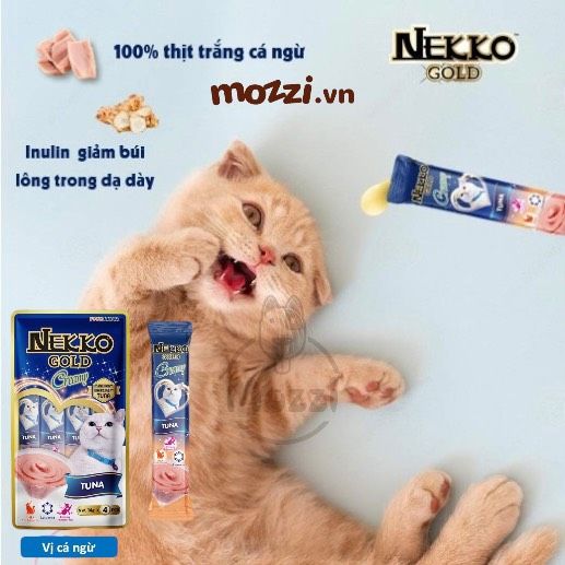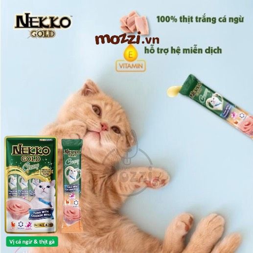 Nekko Gold dạng súp thưởng là thức ăn ướt thơm ngon, bổ sung vitamin và khoáng chất, đồng thời cung cấp dinh dưỡng cho mèo cưng.