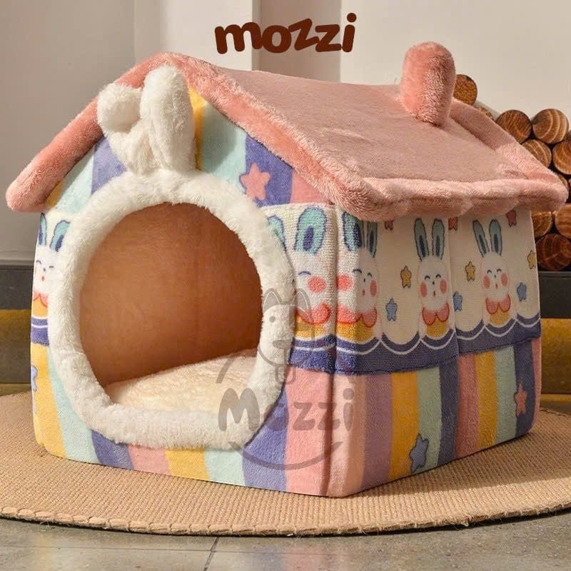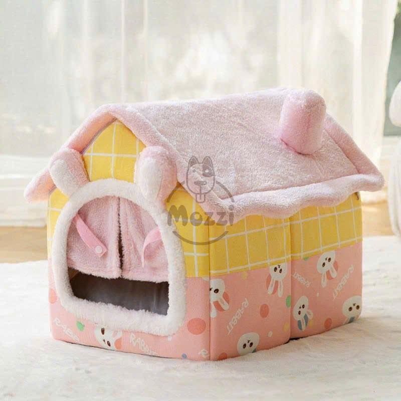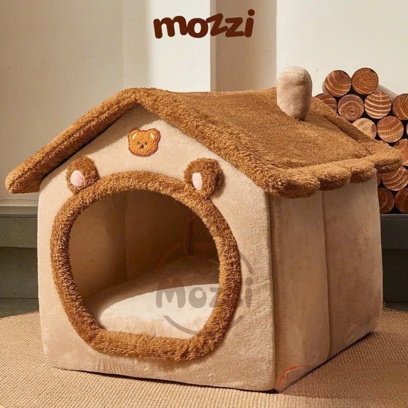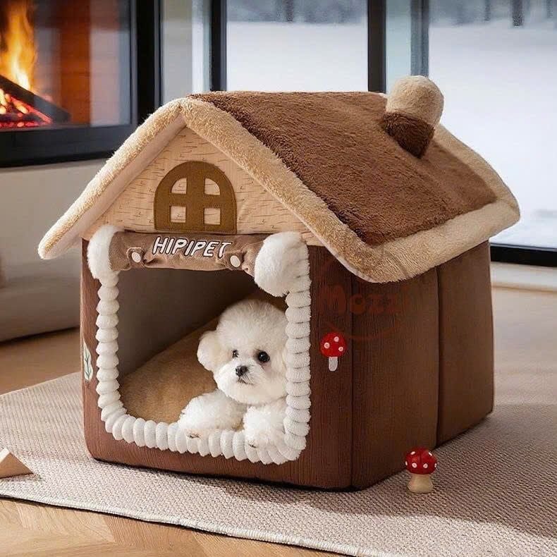 Nhà nệm cho chó mèo có mái viền bông mềm tháo rời