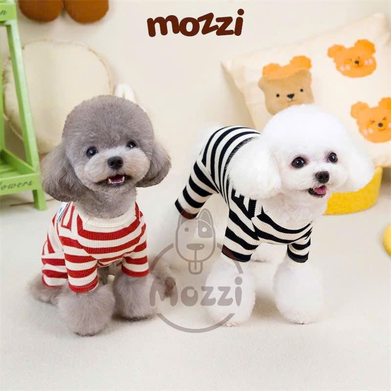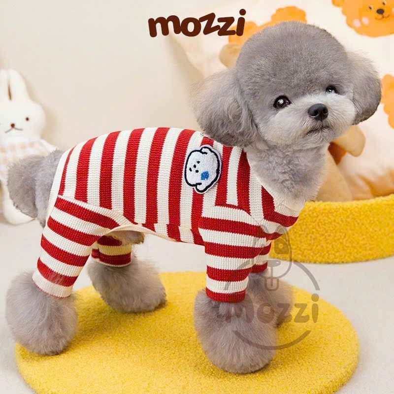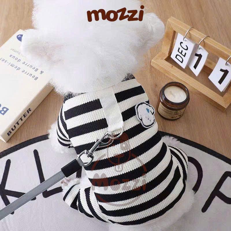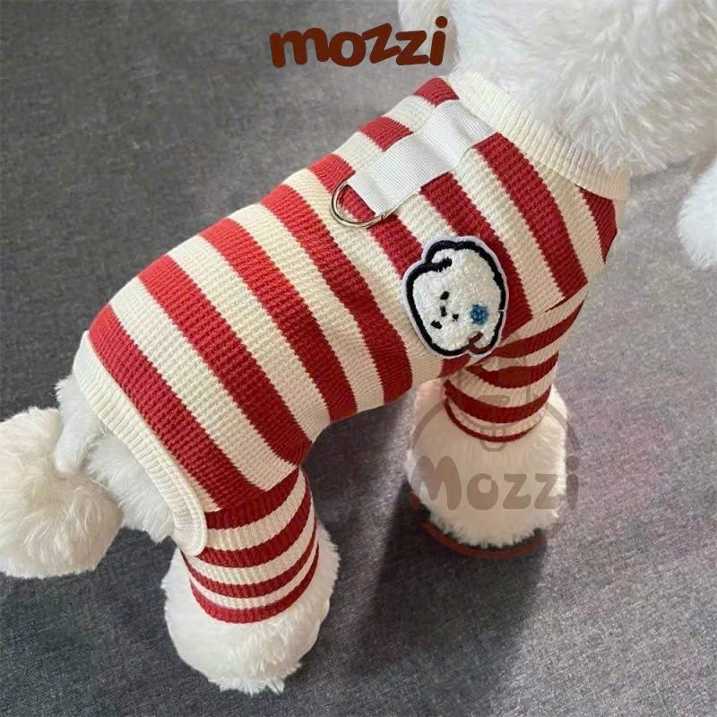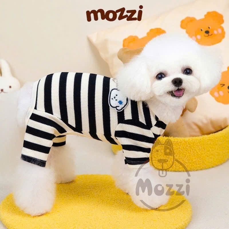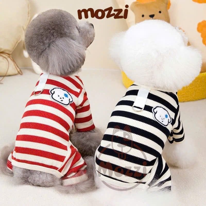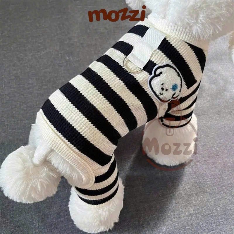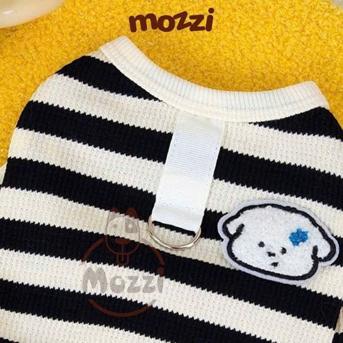 Áo liền chân sọc ngang chó trắng có khoen dắt