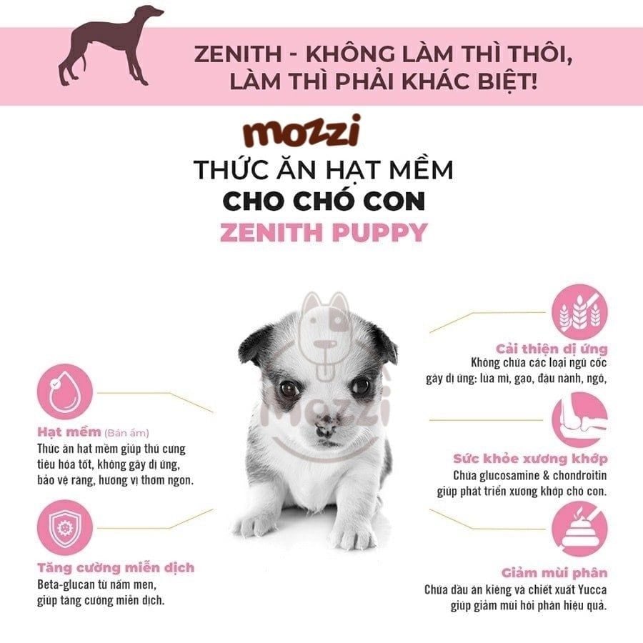 - Giờ đây, đã có cách đơn giản hơn chính là thức ăn hạt mềm. Zenith dễ nhai, dễ tiêu hóa, đảm bảo đủ chất dinh dưỡng cho cún phát triển. Đặc biệt, có bổ sung lợi khuẩn, tăng sức đề kháng tự nhiên.