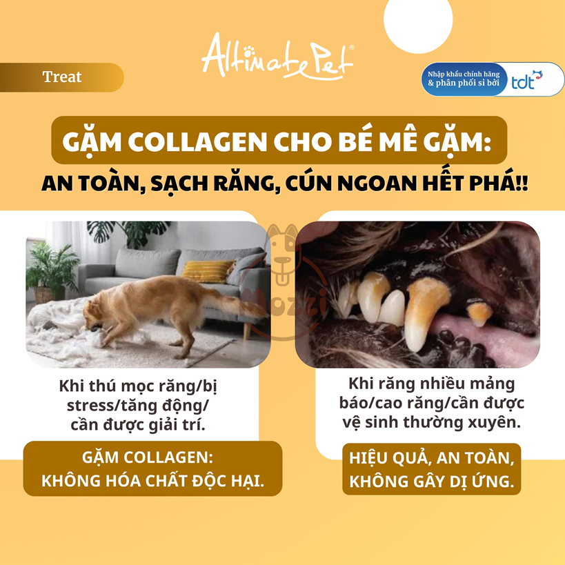 Ngoài ra, gặm Altimate Collagen Dog Chew với công thức “tối giản nguyên liệu” - không dùng các loại chất độn công nghiệp giá rẻ và được bổ sung thêm thịt giúp thú cưng say mê thưởng thức gặm mà không lo nguy hại đến sức khỏe.