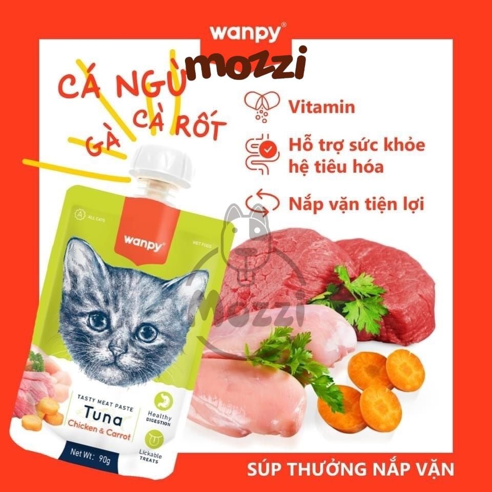 Súp thưởng cho mèo Wanpy có nắp vặn Bịch 90gr