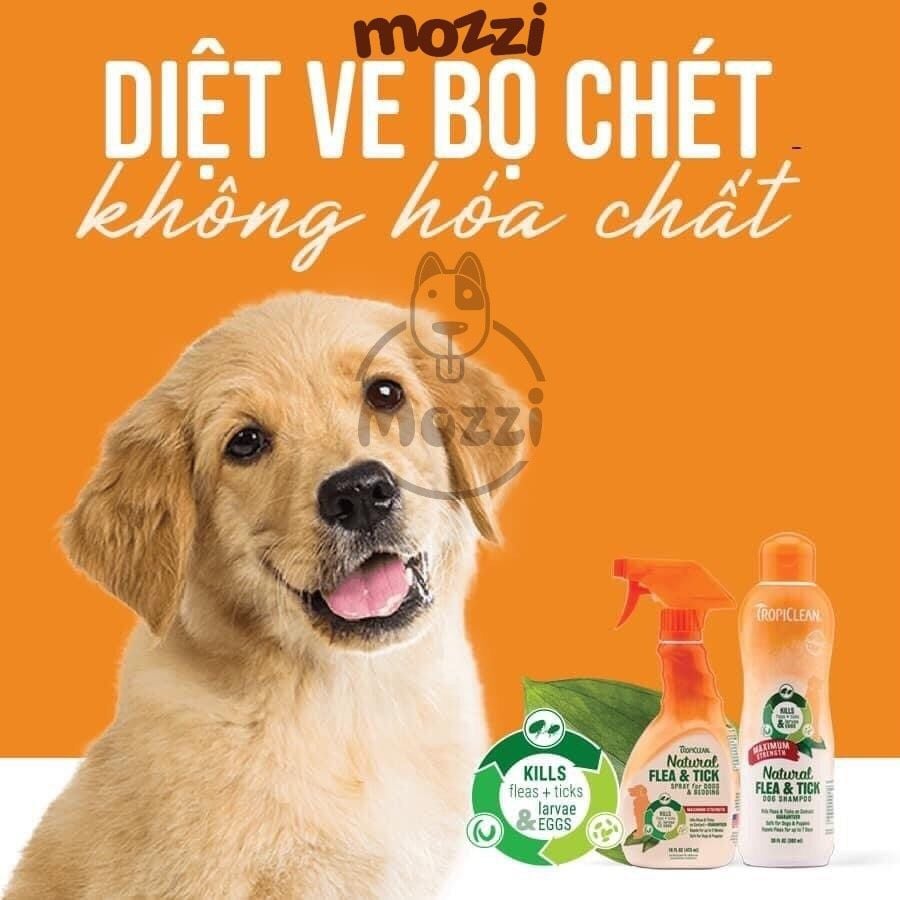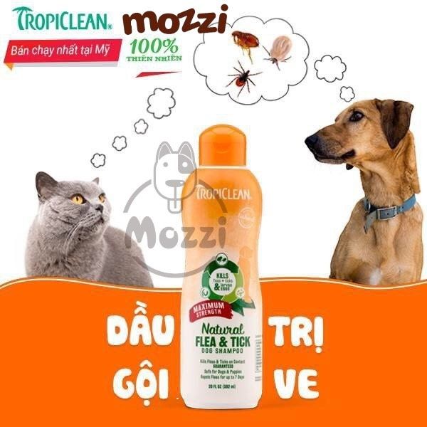 Sữa tắm Tropiclean Natural Flea & Tick Tắm ve và bọ chét 592ml cho chó mèo