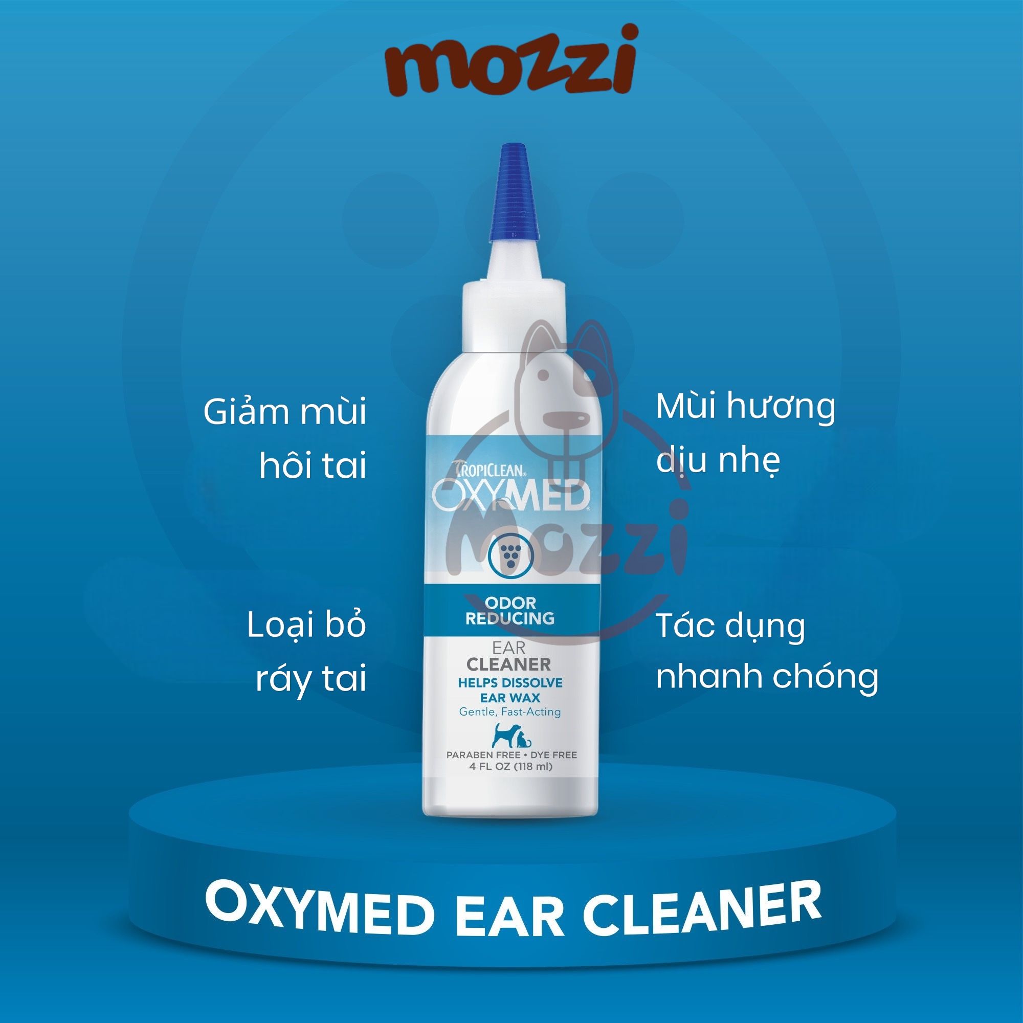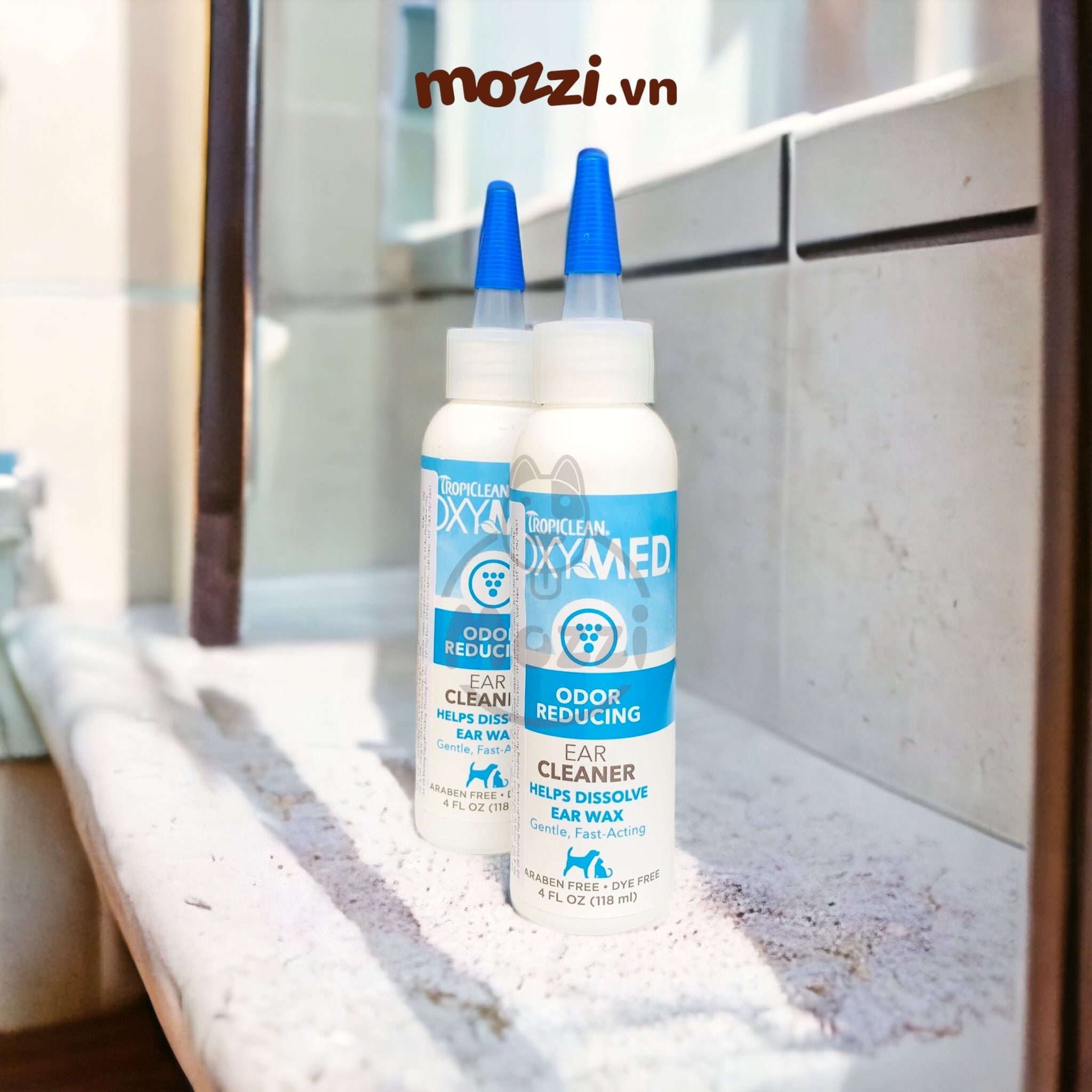 Dung dịch vệ sinh tai Tropiclean Oxymed 118ml: Là sản phẩm có công thức độc quyền từ Mỹ nguồn gốc tự nhiên, giúp loại bỏ nhanh chóng ráy tai và giảm mùi hôi xuất phát từ tai thú cưng cực kì hiệu quả. Sử dụng thường xuyên giúp duy trì vệ sinh tai luôn sạch sẽ.
